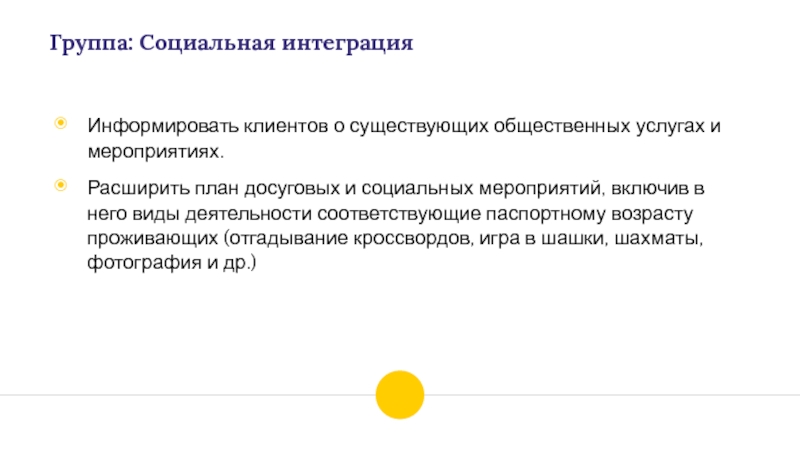 план досуговых и социальных мероприятий, включив в него виды деятельности