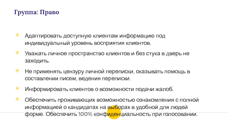 Адаптировать доступную клиентам информацию под индивидуальный уровень восприятия клиентов.