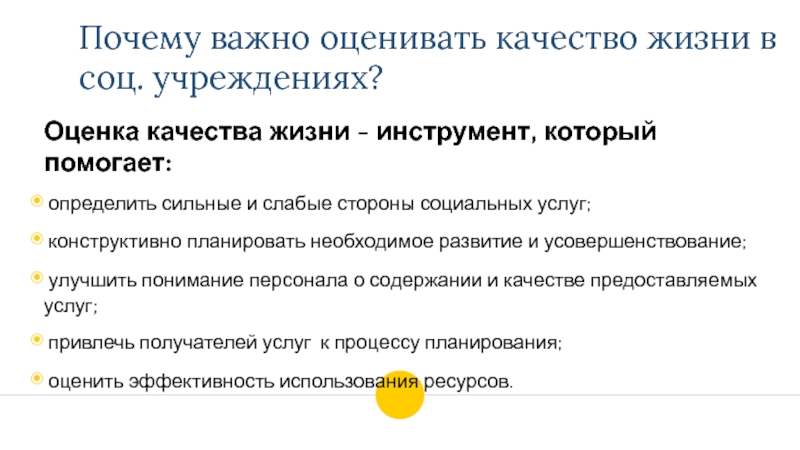 Слайд 17Почему важно оценивать качество жизни в соц. учреждениях?