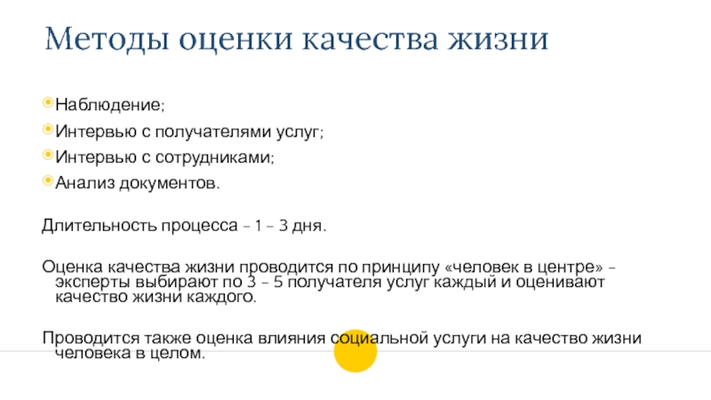 Проводится также оценка влияния социальной услуги на качество жизни человека в целом.