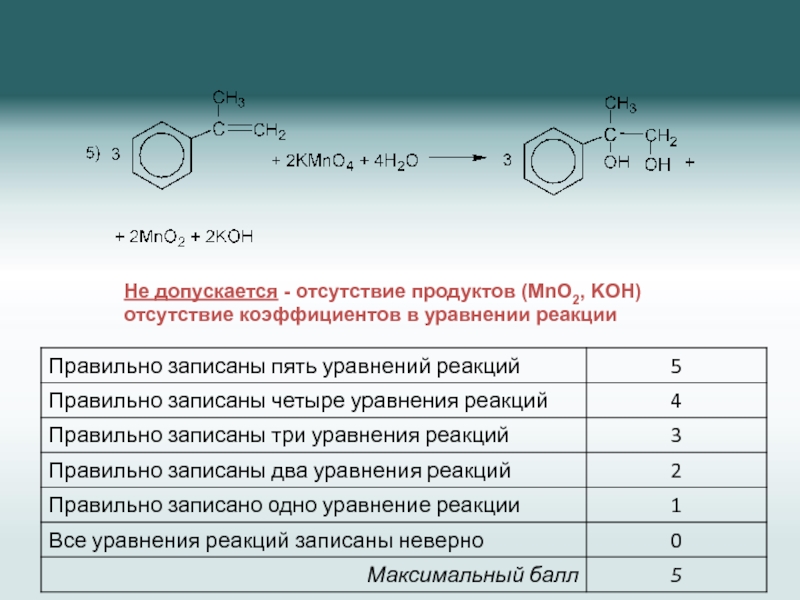 Оценивание правильности записи каждого из пяти уравнений реакций производится в рамках единых требований к сформированности умения