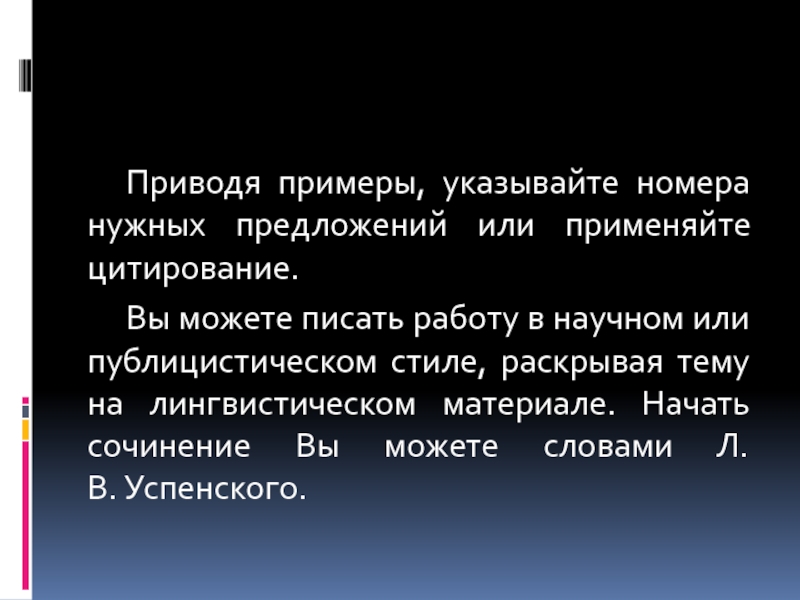 Слайд 94Приводя примеры, указывайте номера нужных предложений или применяйте цитирование.