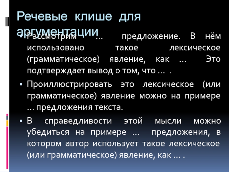 Подсказки при выборе языковых явлений для аргументации, прежде