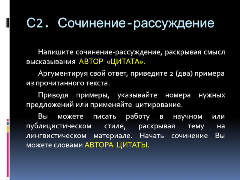 сочинение-рассуждение на лингвистическую тему. Альтернативного задания С2.2