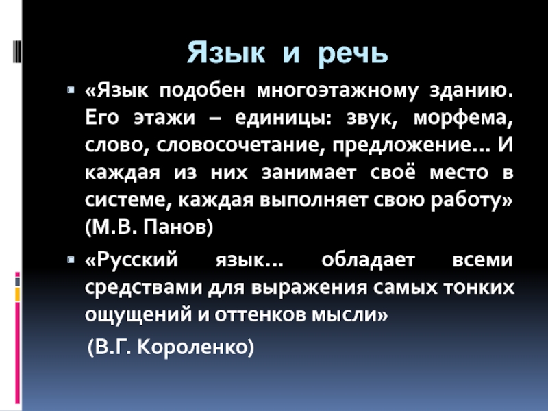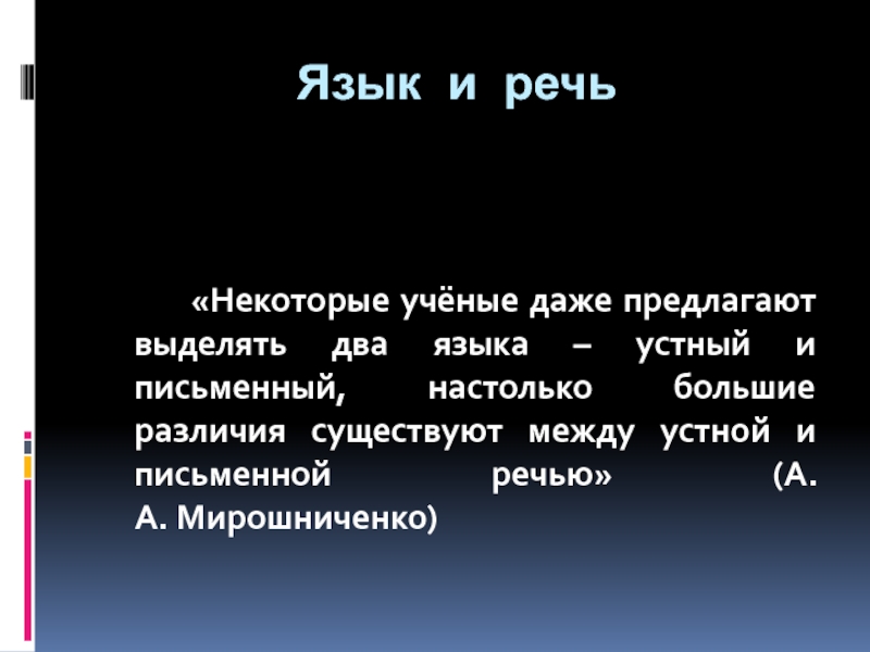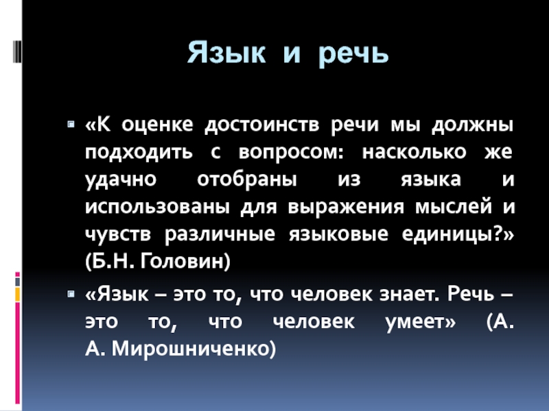 «Язык – это то, что человек знает. Речь – это то, что человек умеет» (А.А. Мирошниченко)