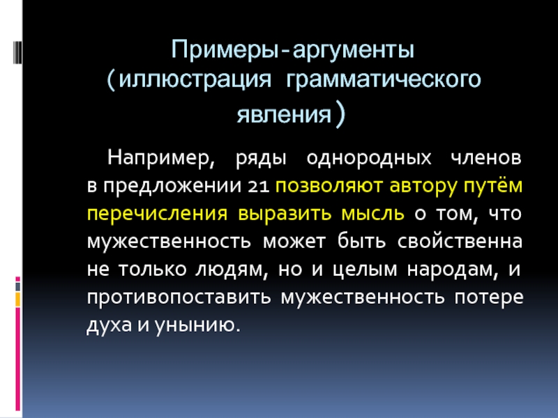 путём перечисления выразить мысль о том, что мужественность может быть свойственна не только людям, но и целым народам, и противопоставить мужественность потере духа и унынию.
