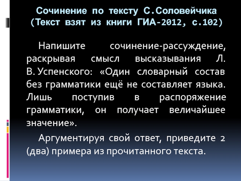 Слайд 93Сочинение по тексту С.Соловейчика (Текст взят из книги ГИА-2012, с.102)