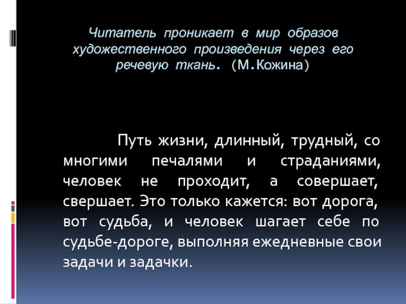 Слайд 86Читатель проникает в мир образов художественного произведения через его речевую