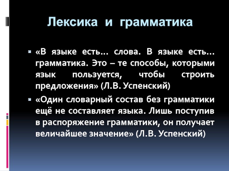 сочинение-рассуждение, раскрывая смысл высказывания Л.В. Успенского: «Один словарный состав без грамматики