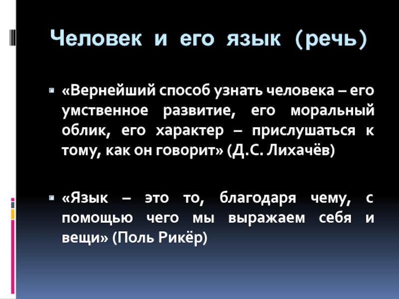«Язык – это то, благодаря чему, с помощью чего мы выражаем себя и вещи» (Поль Рикёр)