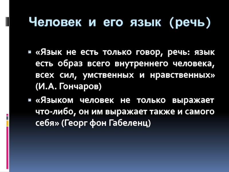 «Языком человек не только выражает что-либо, он им выражает также и самого себя» (Георг фон Габеленц)