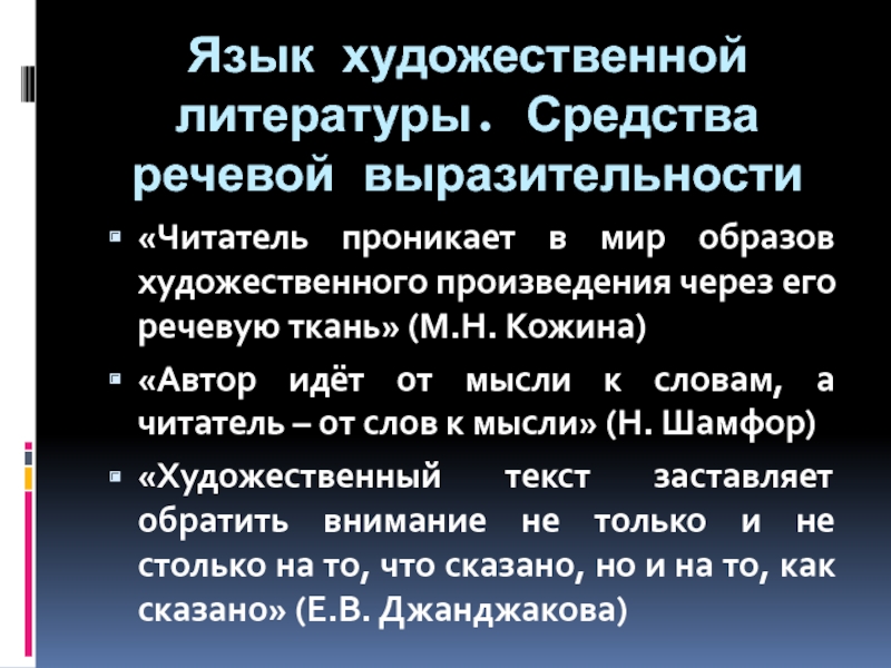 «Художественный текст заставляет обратить внимание не только и не столько на то, что сказано, но и на то, как сказано» (Е.В. Джанджакова)