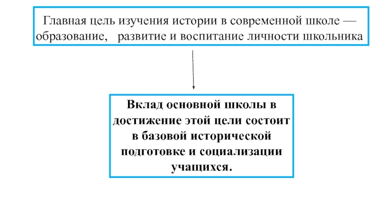 Главная цель изучения истории в современной школе — образование,  развитие и воспитание личности школьникаВклад основной школы