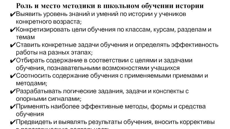 Роль и место методики в школьном обучении историиВыявить уровень знаний и умений по истории у учеников конкретного
