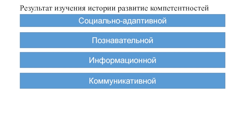 Результат изучения истории развитие компетентностей Социально-адаптивнойПознавательнойИнформационнойКоммуникативной
