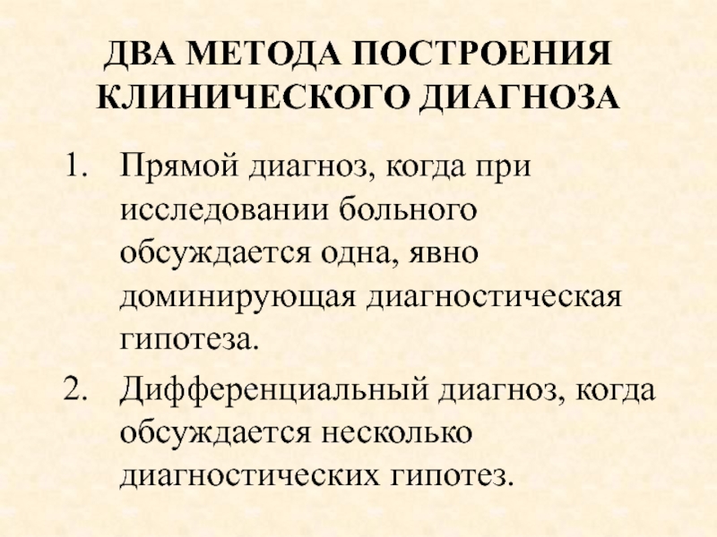 Слайд 33ДВА МЕТОДА ПОСТРОЕНИЯ КЛИНИЧЕСКОГО ДИАГНОЗА