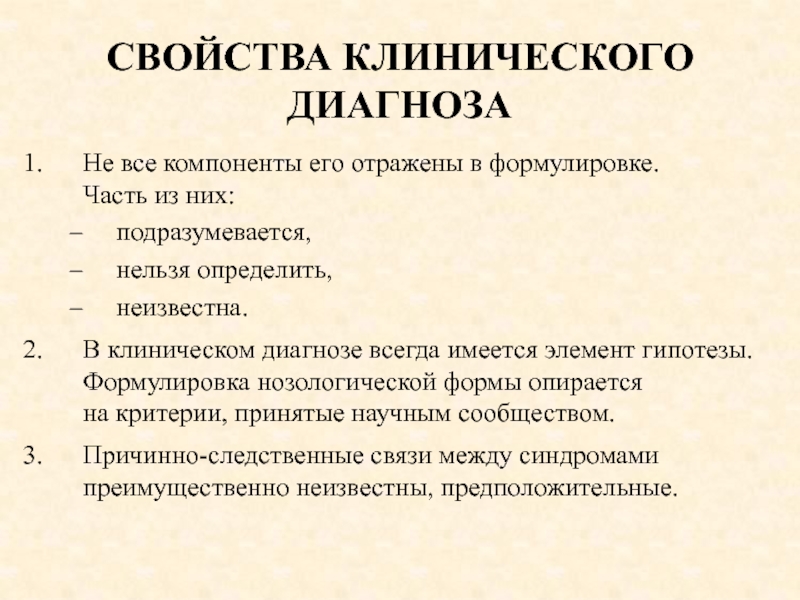 Слайд 28СВОЙСТВА КЛИНИЧЕСКОГО ДИАГНОЗА