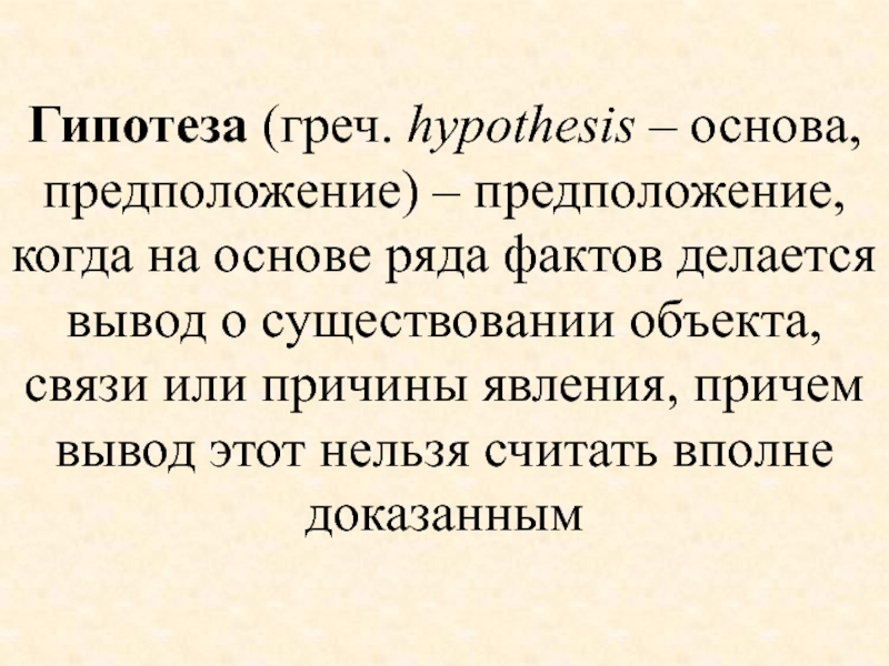 Слайд 29Гипотеза (греч. hypothesis – основа, предположение) – предположение, когда на