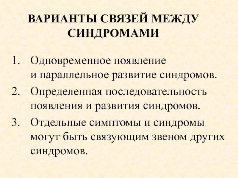 Слайд 36ВАРИАНТЫ СВЯЗЕЙ МЕЖДУ СИНДРОМАМИ