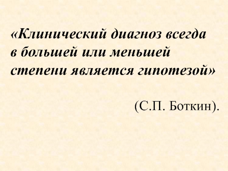 В клиническом диагнозе всегда имеется элемент гипотезы. Формулировка