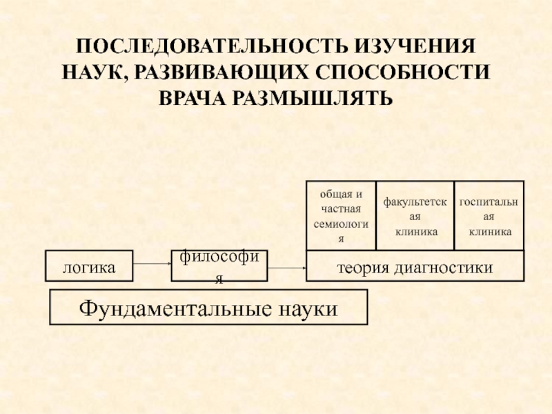 Слайд 7ПОСЛЕДОВАТЕЛЬНОСТЬ ИЗУЧЕНИЯ НАУК, РАЗВИВАЮЩИХ СПОСОБНОСТИ ВРАЧА РАЗМЫШЛЯТЬ