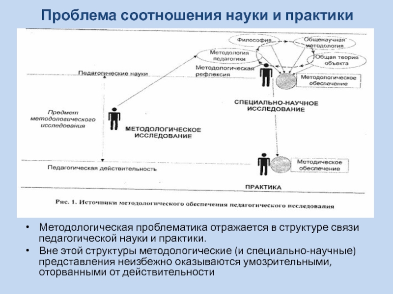 Предмет методологии педагогики – соотношение между педагогической действительностью и ее отражением в педагогической науке.