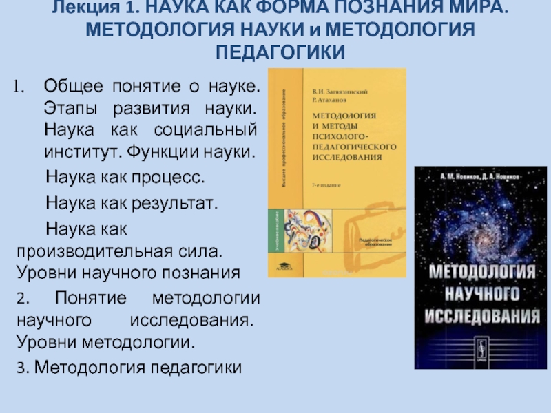 Слайд 5Лекция 1. НАУКА КАК ФОРМА ПОЗНАНИЯ МИРА. МЕТОДОЛОГИЯ НАУКИ и