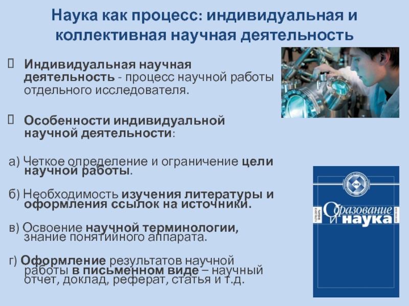 Слайд 14Наука как процесс: индивидуальная и коллективная научная деятельность