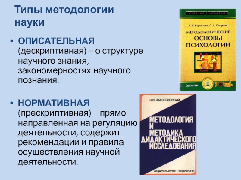 ОПИСАТЕЛЬНАЯ (дескриптивная) – о структуре научного знания, закономерностях