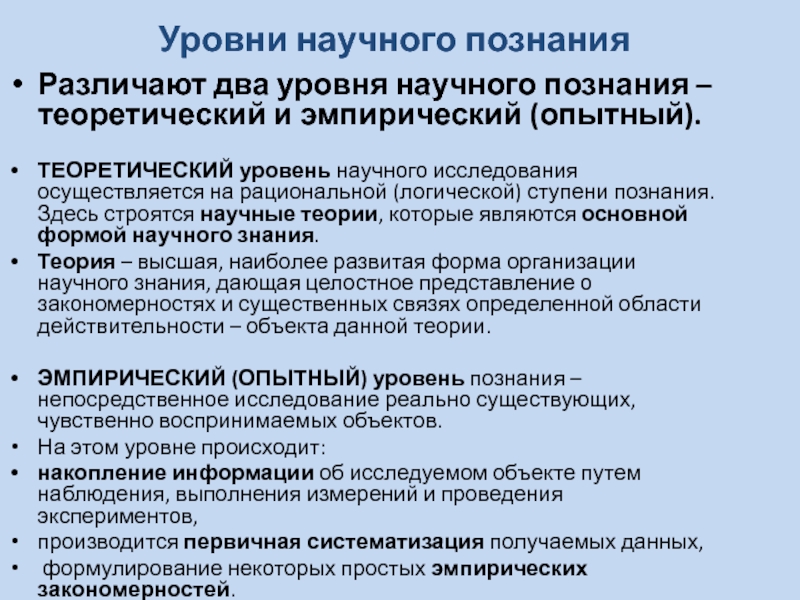 ФИЛОСОФСКИЙ УРОВЕНЬ – общие принципы познания (гносеология) и