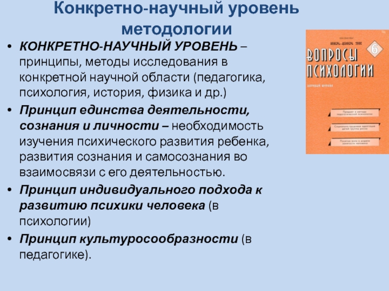КОНКРЕТНО-НАУЧНЫЙ УРОВЕНЬ – принципы, методы исследования в конкретной