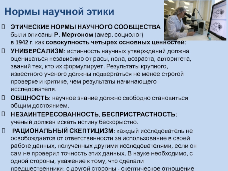 ЭТИЧЕСКИЕ НОРМЫ НАУЧНОГО СООБЩЕСТВА