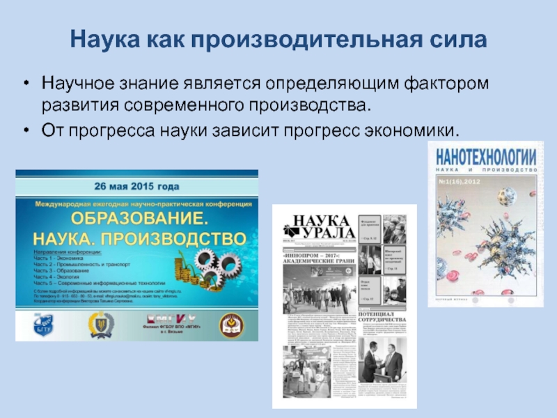 Во второй половине ХХ в. наука превращается в непосредственную производительную силу, значительно ускорившую рост экономики и благосостояния в развитых странах (НТР).