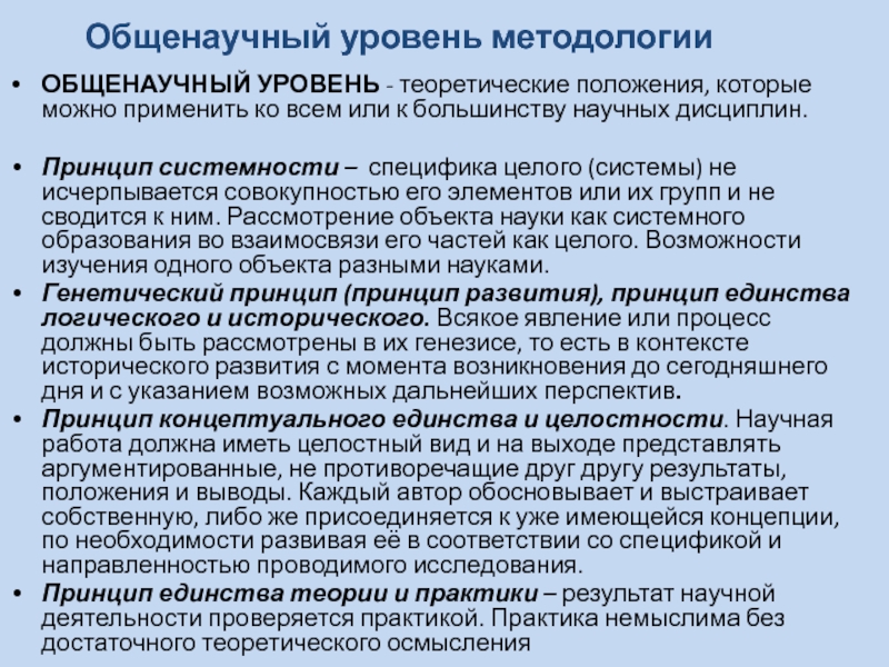 ОБЩЕНАУЧНЫЙ УРОВЕНЬ - теоретические положения, которые можно применить