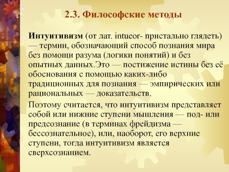 Интуитивизм (от лат. intueor- пристально глядеть) — термин,