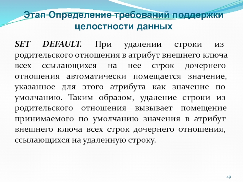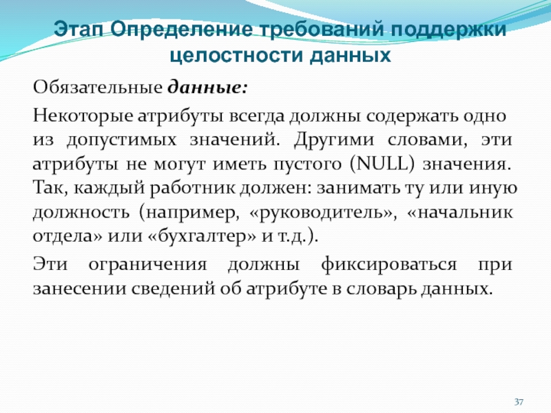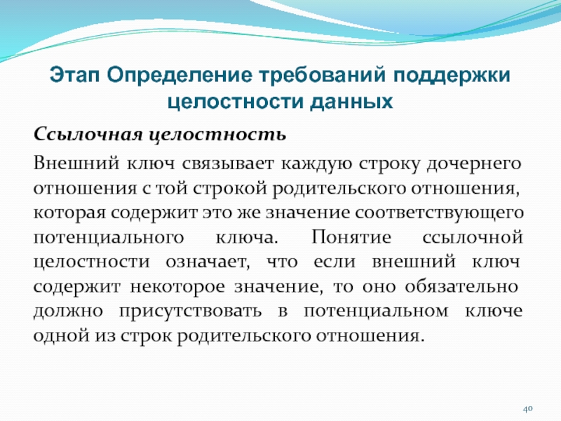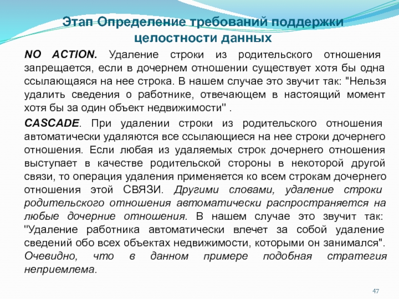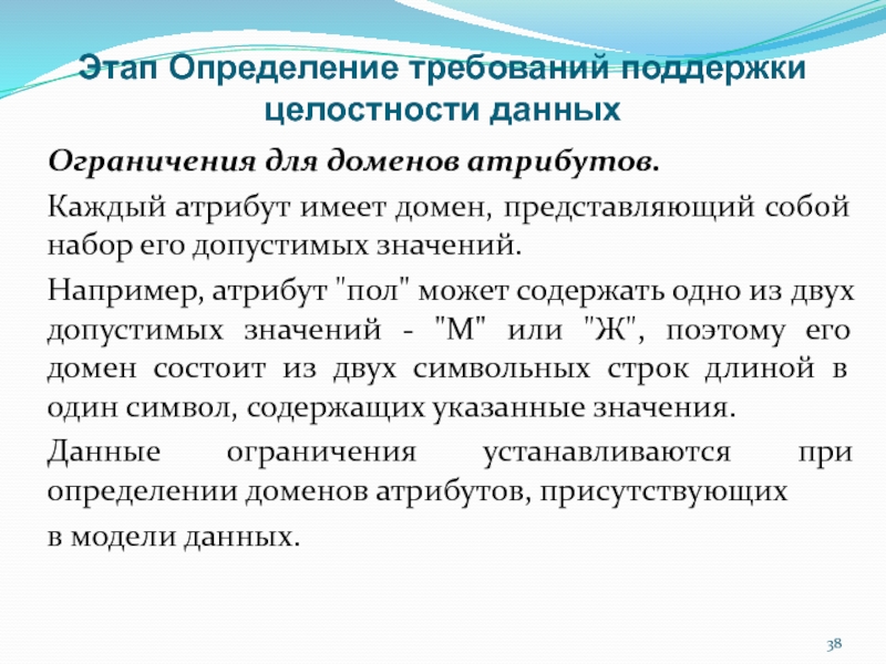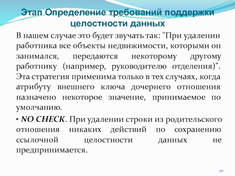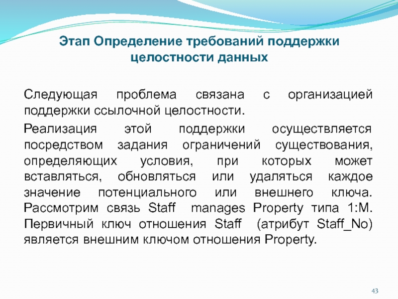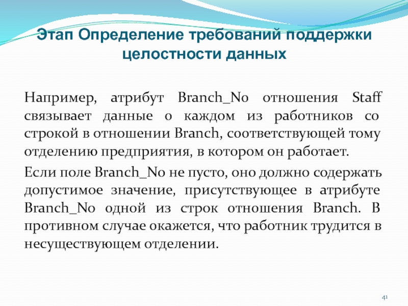 Убедитесь, что установленные для глобальной логической модели ограничения целостности данных не вступают в противоречие с теми ограничениями, которые были установлены для каждого из пользовательских представлений. Любые конфликты следует устранять посредством проведения консультаций с пользователями.