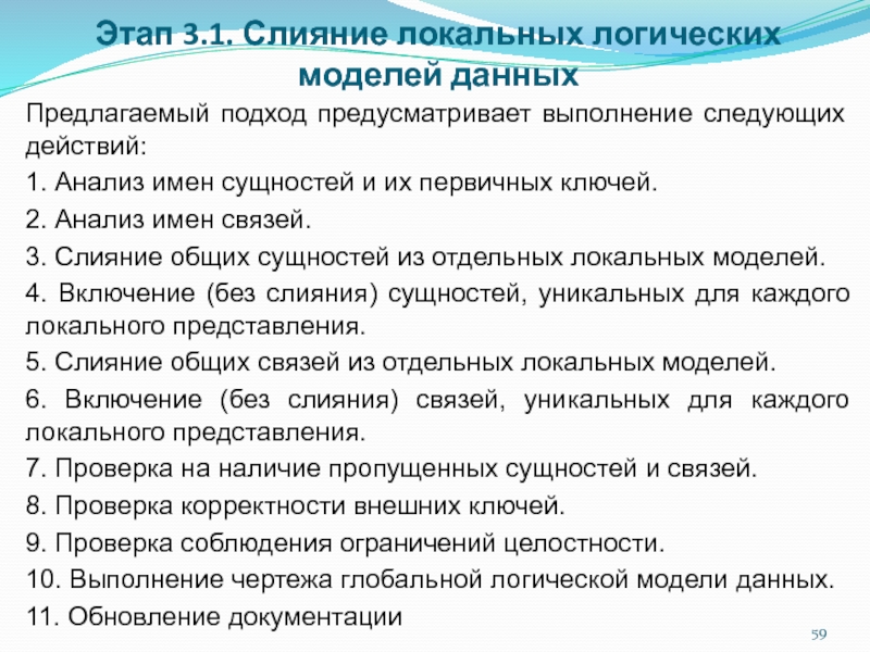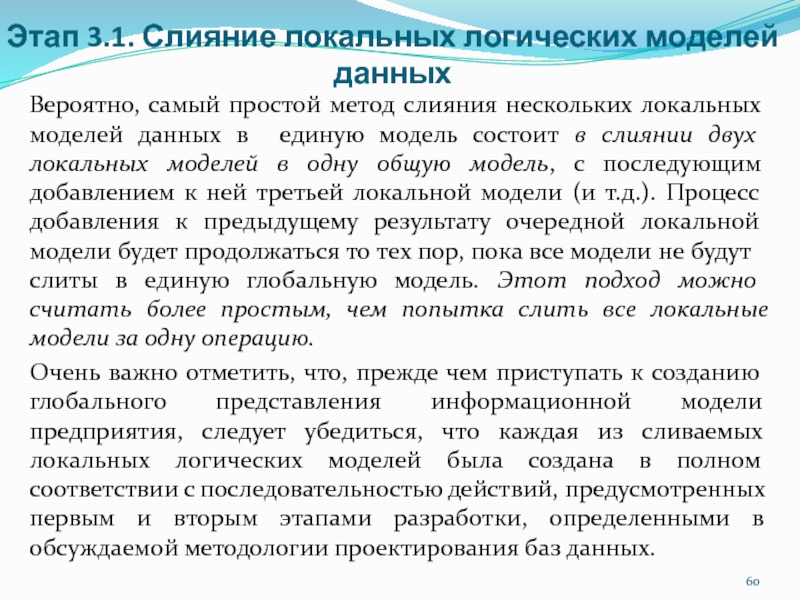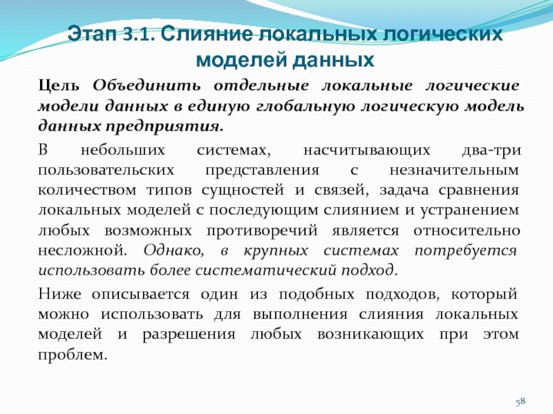 Слайд 60Этап 3.1. Слияние локальных логических моделей данных