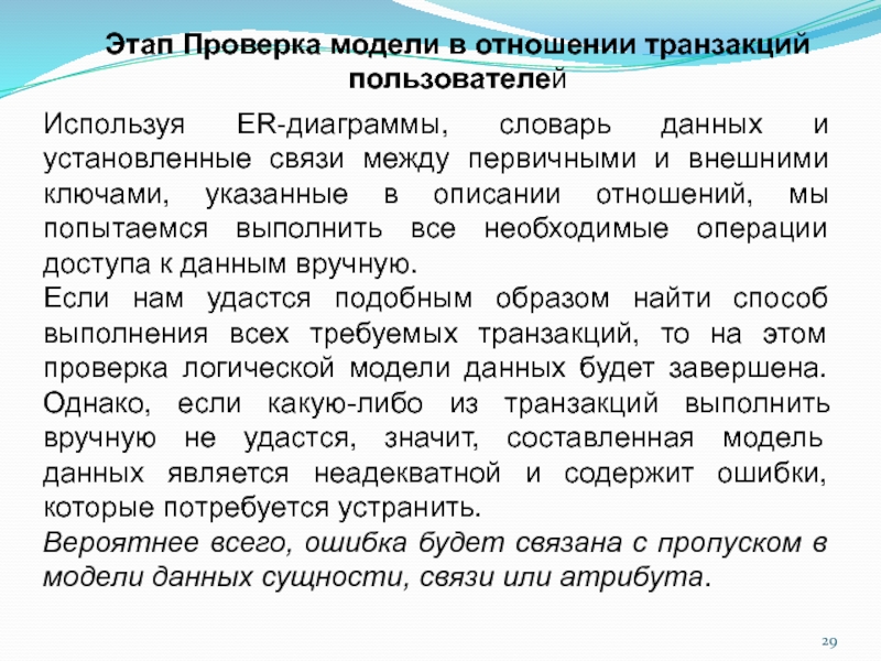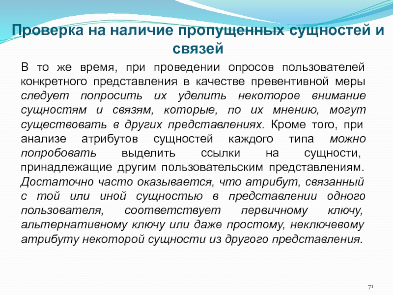 Слайд 71Проверка на наличие пропущенных сущностей и связей