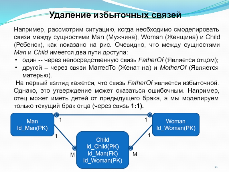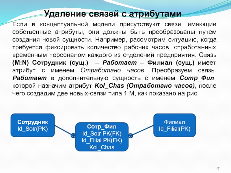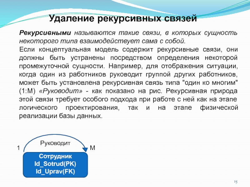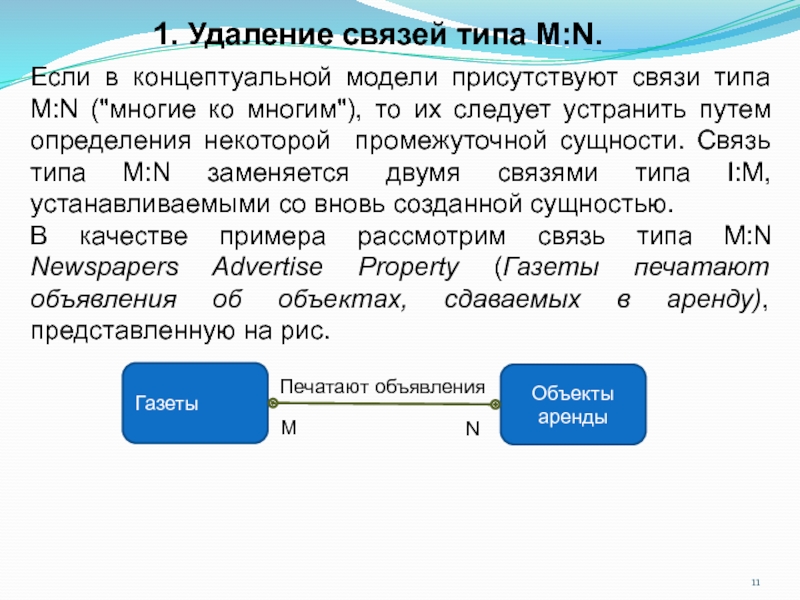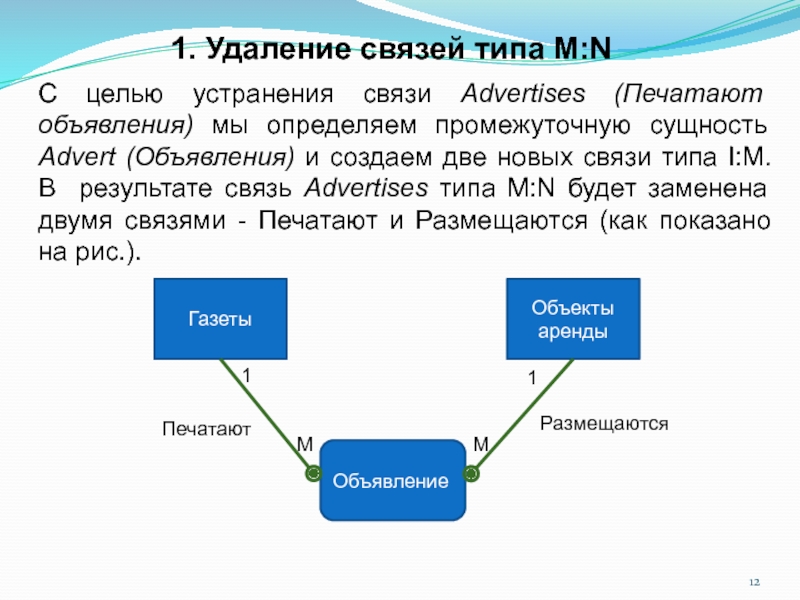 типа M:N ("многие ко многим"), то их следует устранить путем