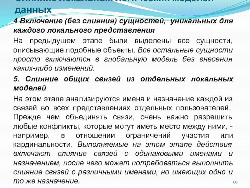 присутствующих в сливаемых логических моделях. Обычно эта процедура включает следующие действия: