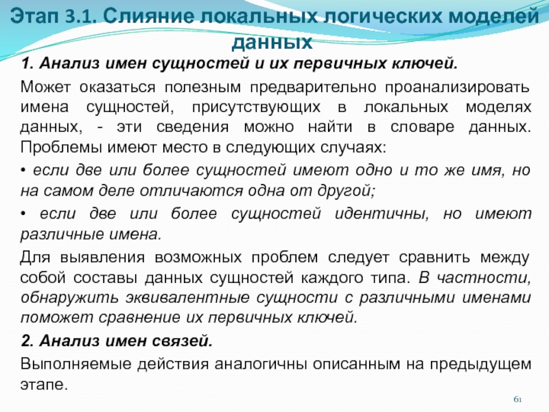 Слайд 61Этап 3.1. Слияние локальных логических моделей данных