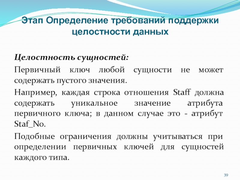 В обоих случаях первичным ключом является атрибут Staff_No. Слияние этих сущностей осуществляется путем объединения их атрибутов, поэтому в Сводной сущности Staff будут присутствовать все атрибуты исходных сущностей.
