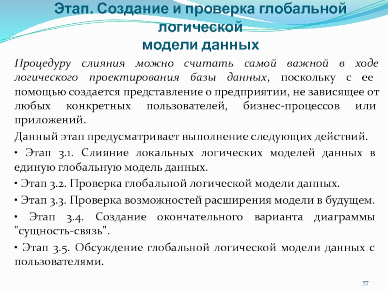 Слайд 63Этап 3.1. Слияние локальных логических моделей данных