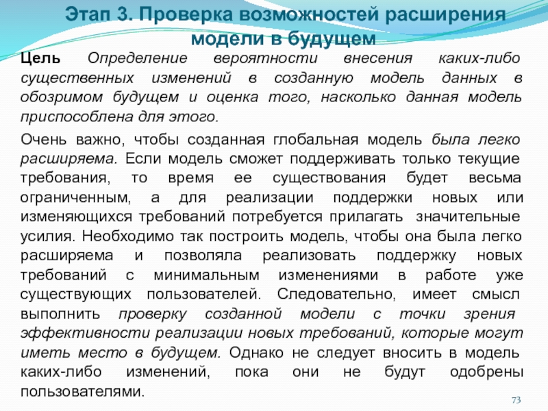 Слайд 73 Этап 3. Проверка возможностей расширения модели в будущем