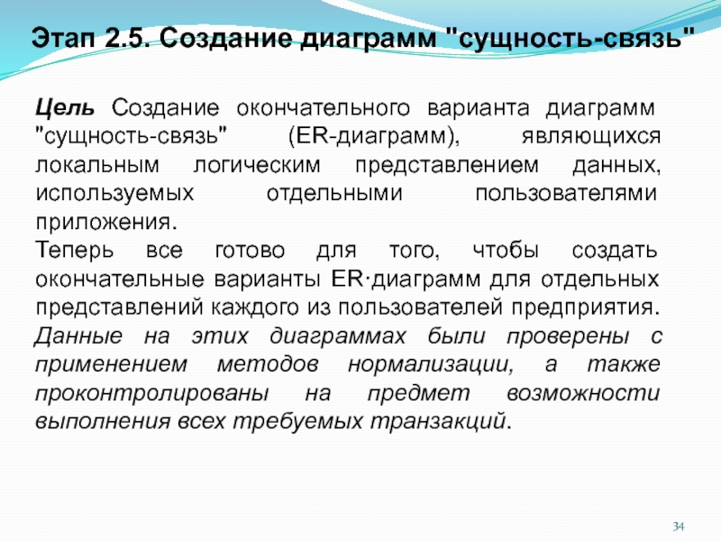 На этом этапе мы продолжим работу с локальными концептуальными моделями данных, созданными на предыдущем этапе. Наша задача состоит в доработке этих моделей с целью удаления из них всех элементов, затрудняющих реализацию данных моделей в среде реляционных СУБД. В результате выполнения этих действий структуры концептуальных моделей данных будут изменены таким образом, чтобы полностью отвечать требованиям, выдвигаемым реляционной моделью организации баз данных. Поэтому новые модели более корректно называть логическими моделями данных.