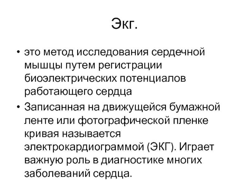 это метод исследования сердечной мышцы путем регистрации биоэлектрических потенциалов работающего
