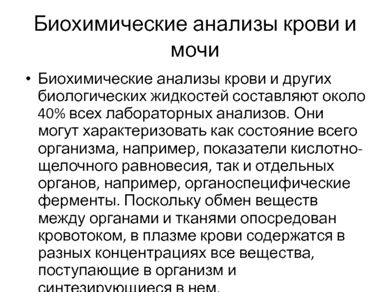 Слайд 20Биохимические анализы крови и мочи