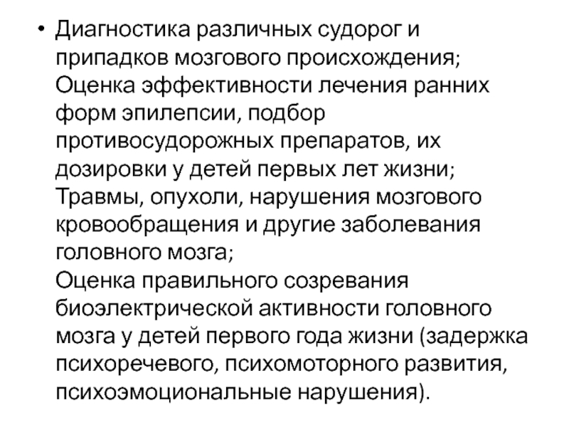 Диагностика различных судорог и припадков мозгового происхождения;