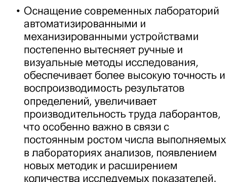 Оснащение современных лабораторий автоматизированными и механизированными устройствами постепенно вытесняет ручные