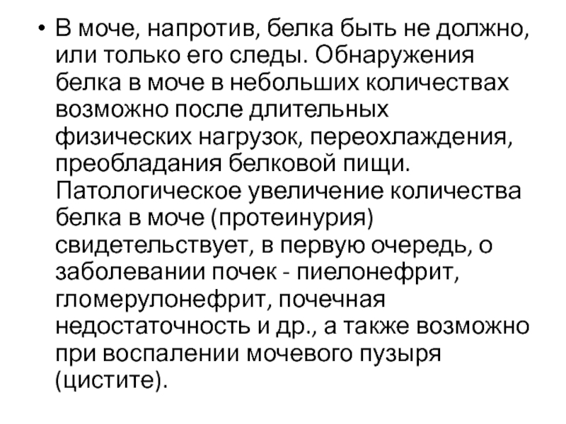 следы. Обнаружения белка в моче в небольших количествах возможно после